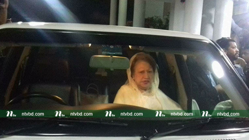 Sylhet: BNP Chairperson Khaleda Zia reaches Dhaka from Sylhet in the early hours of Tuesday after offering fateha at the shrines of Hazrat Shahjalal and Hazrat Shah Paran (RA) as a Dhaka court is set to deliver verdict on Thursday in a graft case against her.