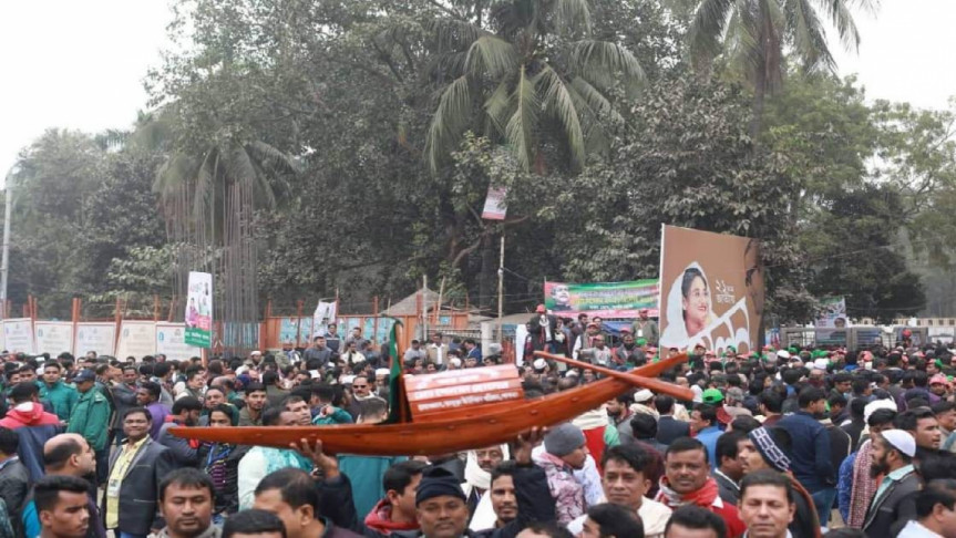 The main stage of the council has been shaped like a boat, the electoral symbol of the party. The digital stage looks like a big boat floating in the mighty Padma River.