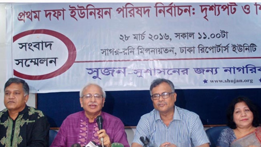 In a written speech, Shujan central coordinator Dilip Kumar Sarker said the elections to 712 UCs in the first phase were held amid huge violence.