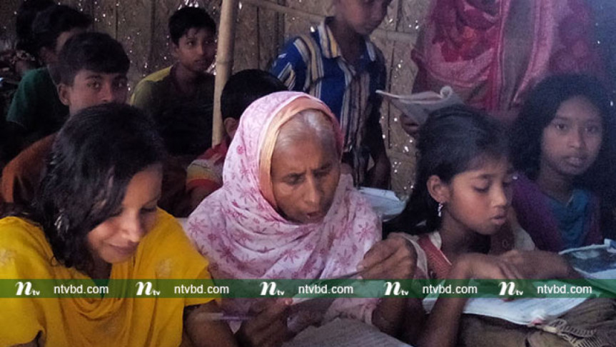 During a recent visit to the Hogalbaria Purbapara Government Primary School, NTV Meherpur correspondent RezAn Ul Basar Tapash found that the sexagenarian woman is busy learning with other children. She is very attentive to her classes and participates in games with her classmates during the school tiffin break.