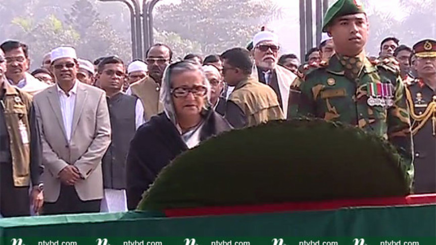 Ministers, Prime Minister's Advisers, Deputy Speaker Fazlu Rabbi Mia, Prime Minister's Special Envoy and Jatiya Party Chief HM Ershad, Whips of the Jatiya Sangsad, MPs attended the janaza.