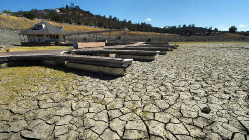Boats sit on dry land, as Folsom Lake reservoir near Sacramento, California stands at only 18 per cent capacity on 17 September 2015. Photo: AFP