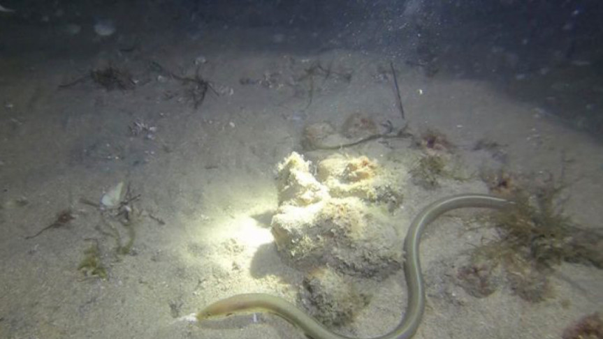 The eel then quickly buried itself in the seabed.