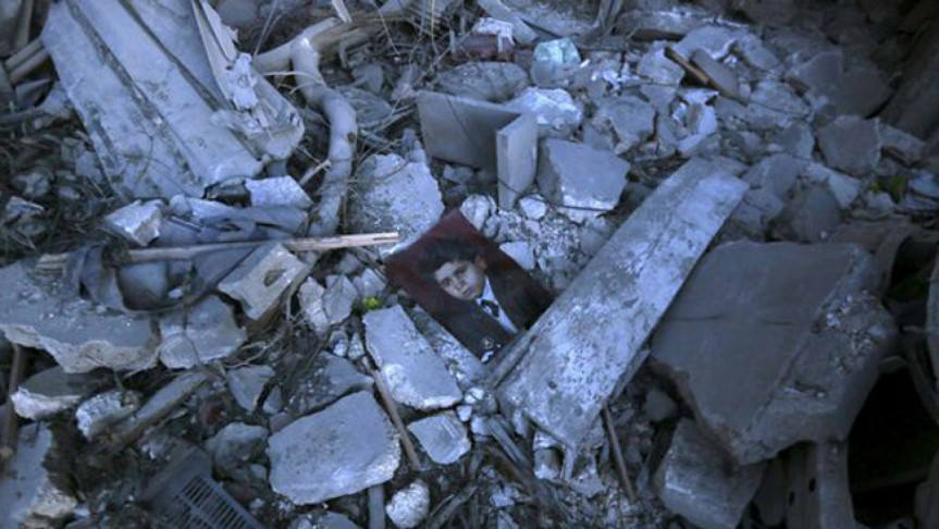 ‘Seven children were killed, and 13 people are still trapped in the rubble,’ he said.