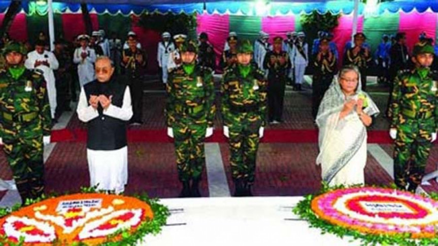President Abdul Hamid first laid a wreath at the grave of Bangabandhu followed by the Prime Minister.