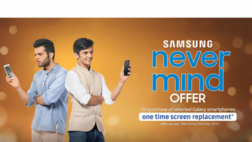 Samsung Bangladesh has recently announced an exciting new offer, ‘Never Mind’ where with the purchase of the Samsung Galaxy J, Galaxy A, Galaxy C, Galaxy On and flagship Galaxy S and Galaxy Note, customers can an avail one-time replacement of a broken screen within 12 months of purchase. The offer is valid on purchases from 28 October, 2017 to 31 December, 2017.