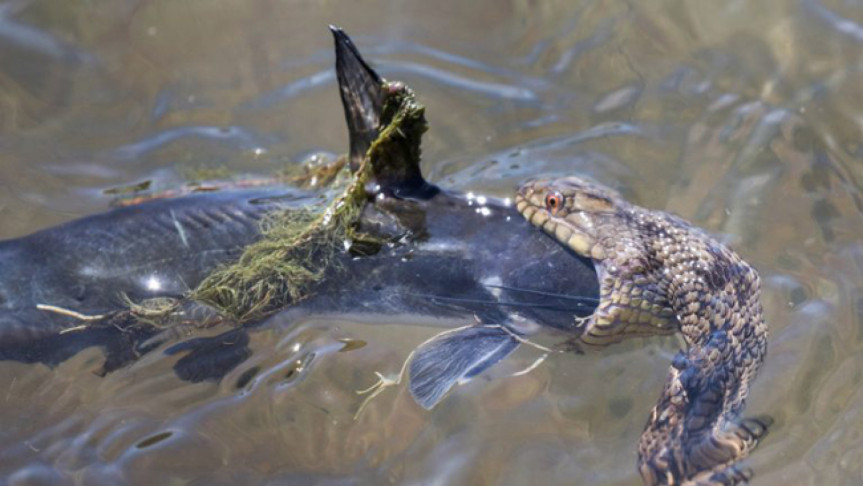 ‘A man fishing close by hollered to us to come over there because a snake was eating a fish, I practically ran over.