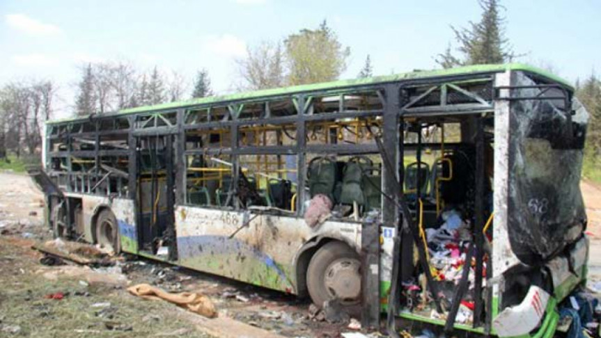 Maysa al-Aswad, a 30-year-old evacuee from Kafraya, said she was sitting on one bus with her six-month-old son Hadi and 10-year-old daughter Narjis when the blast shook the parked convoy.