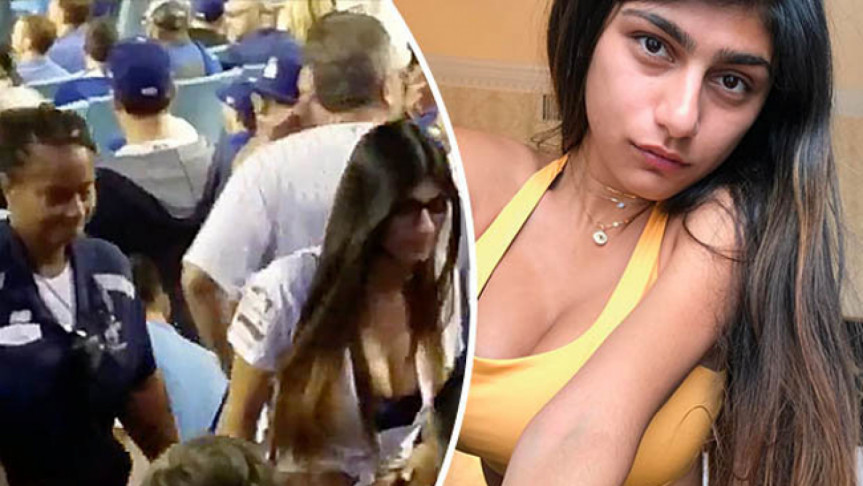 This is the moment adult actress Mia Khalifa was escorted out of a baseball stadium following an alleged altercation with a fan.